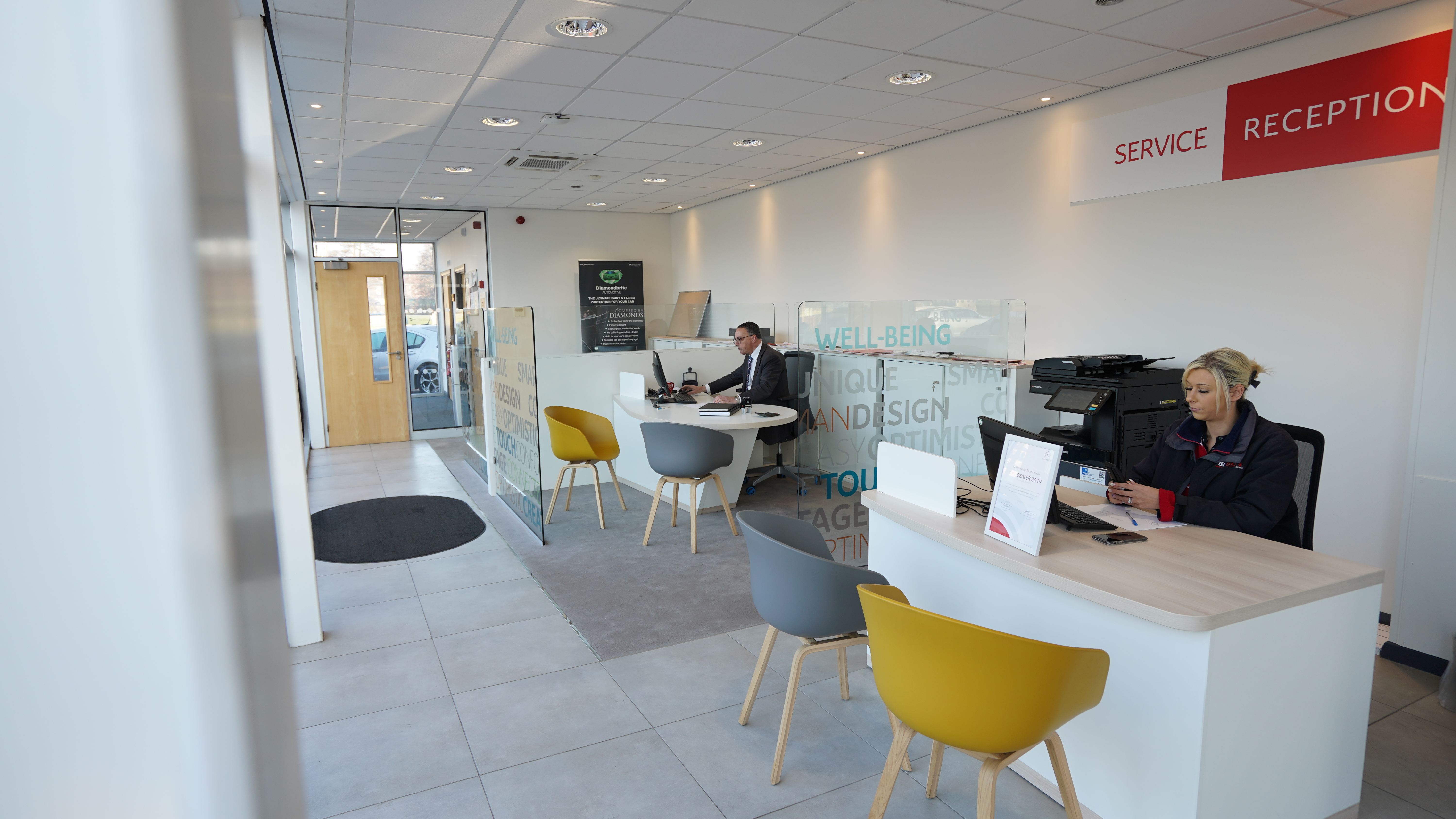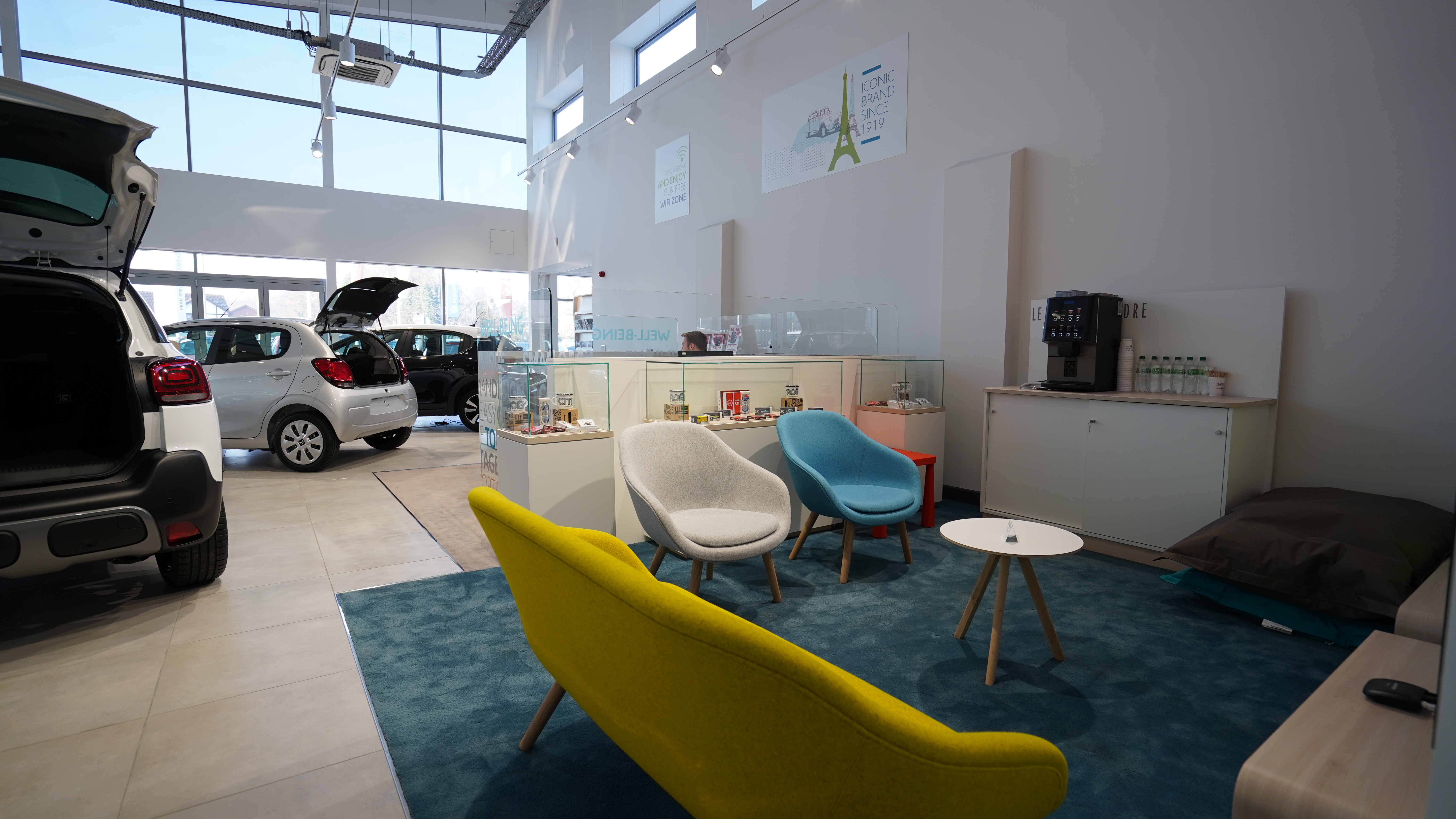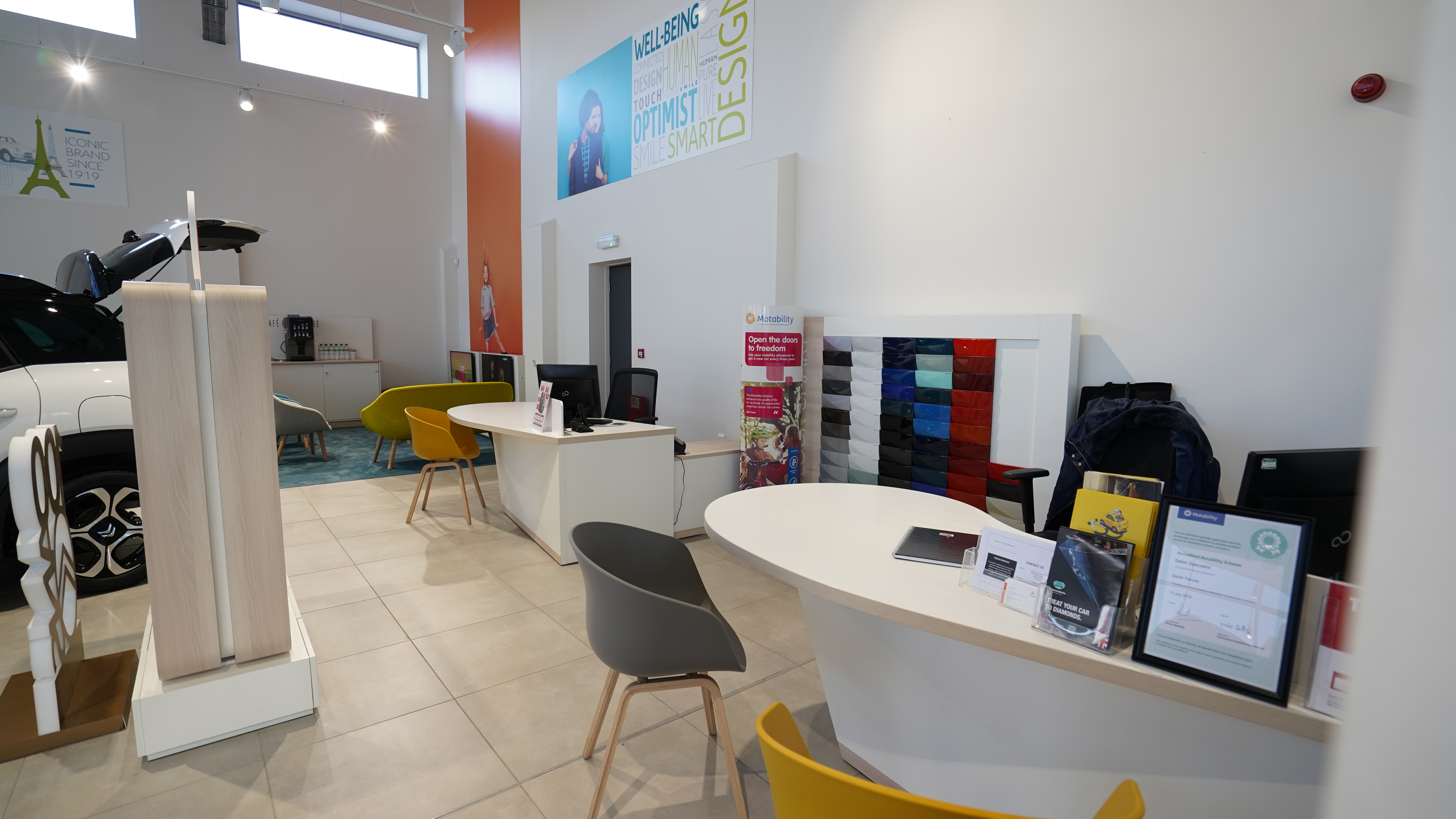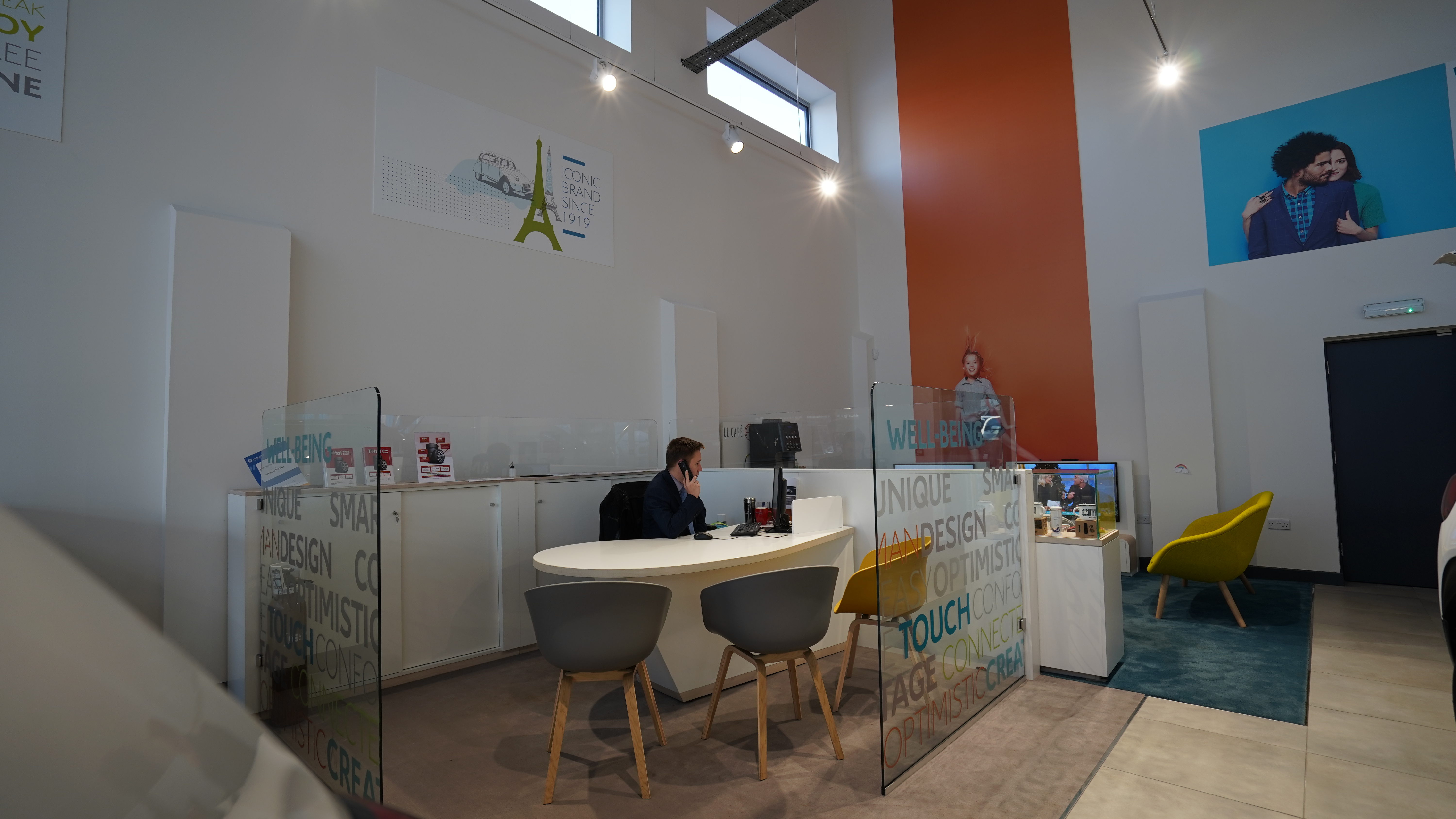 We are delighted to post a video and pictures of the works carried out at the Citroën Kidderminster Garage. We refurbed the existing showroom internally and externally which internally included installation of additional power to the floor via floor boxes to illuminate cars, new hot desks in the showroom, new floor tiles, carpets and it was also fully redecorated to suit the new corporate identity.